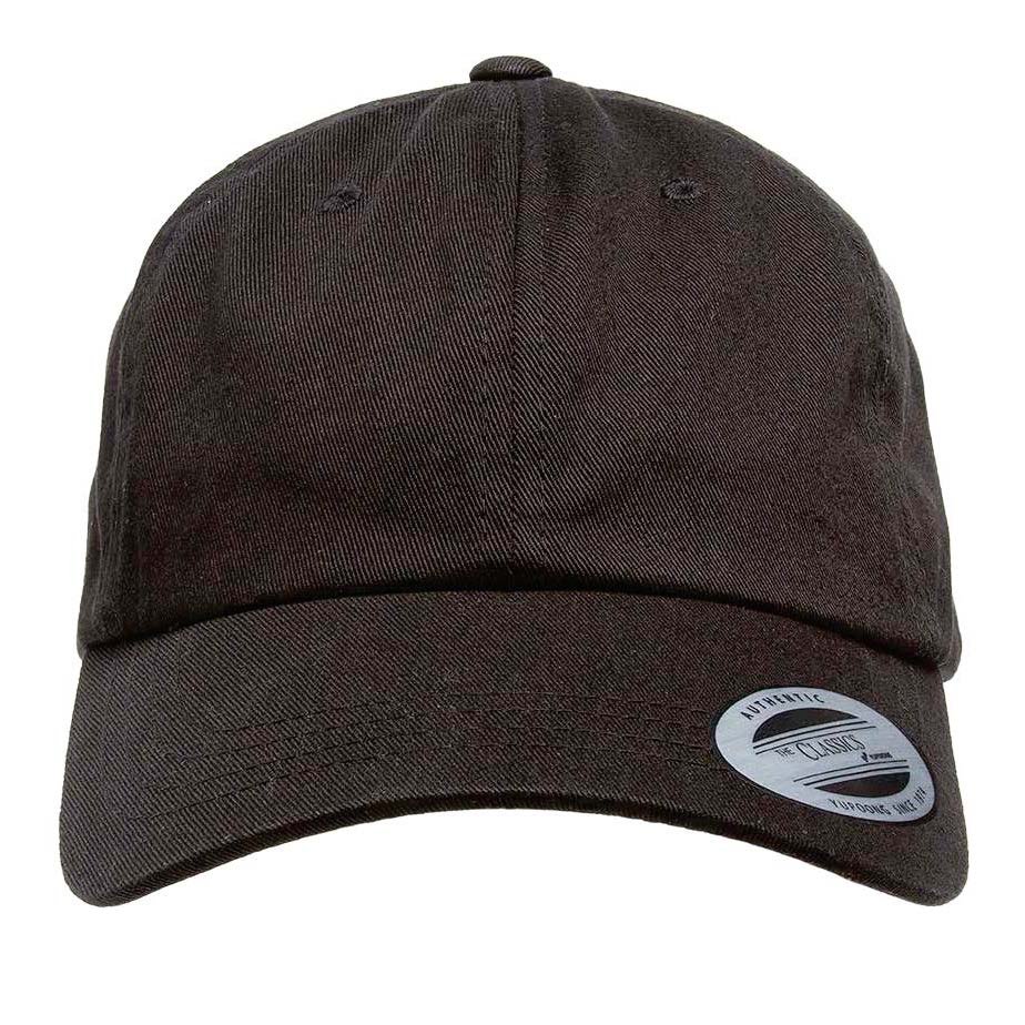 Trendy low-profile dad cap style. 6-panel unstructured cap with matching undervisor. Classic antique brass buckle closure for style and comfort. 4 rows of stitching on visor. Esteemed since 1974.