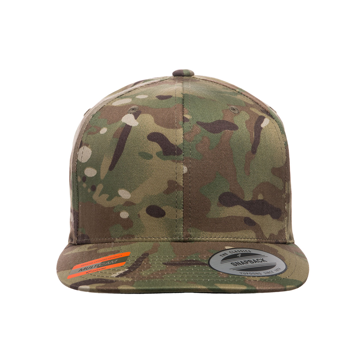 Premium wool-blended snapback in officially-licensed MULTICAM® pattern. 6-panel structured cap with black undervisor. Black plastic snap with 8 rows of stitching on visor. Esteemed since 1974.